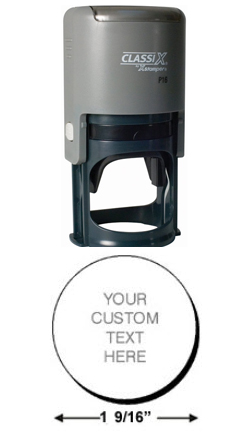 Round: 1.56" Diameter (1-9/16") Customize up to 5 Lines Self-Inking Xstamper ClassiX P16